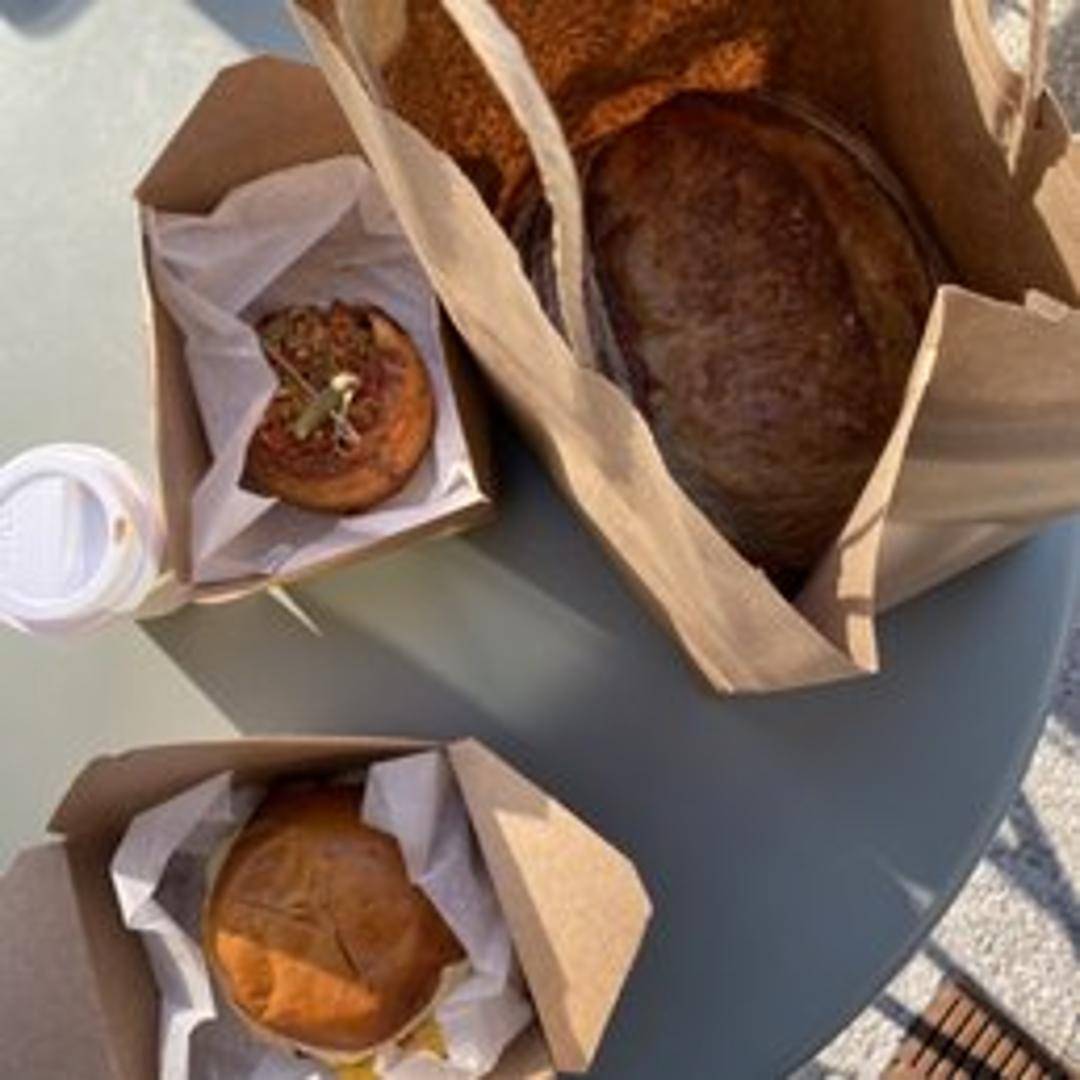 A hearty breakfast sandwich featuring a freshly baked roll, filled with your choice of fillings like eggs, cheese, and breakfast meats (bacon, sausage, or ham). Served warm.