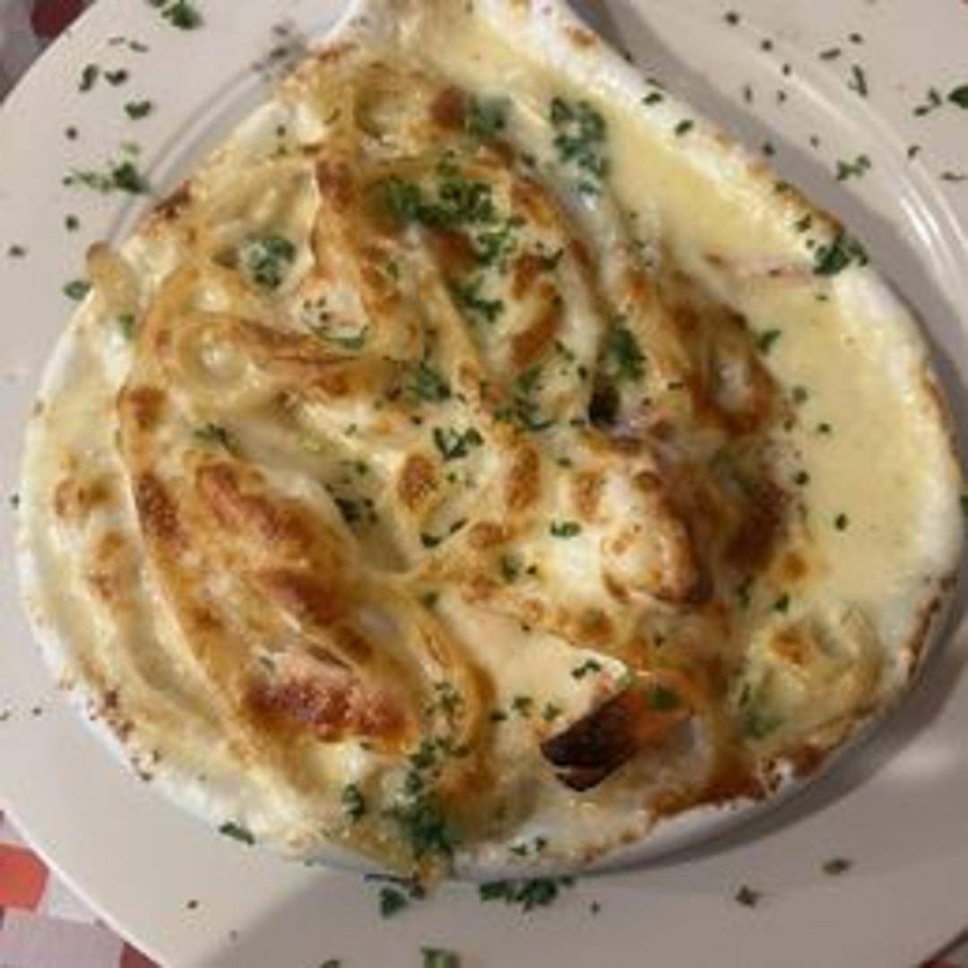 Fettuccine pasta tossed in a creamy Alfredo sauce made with butter, Parmesan cheese, and cream.