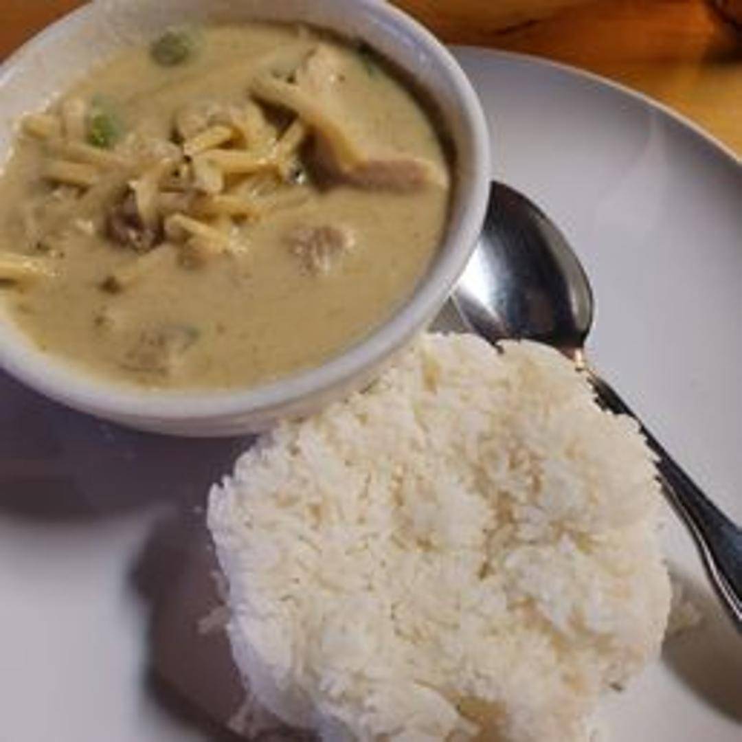 A vibrant and aromatic Thai curry made with green curry paste, coconut milk, bamboo shoots, bell peppers, basil, and your choice of protein.