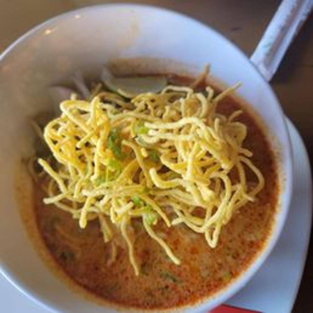 Egg noodles in a rich and creamy coconut curry broth, topped with crispy noodles, pickled mustard greens, red onions, and your choice of protein.
