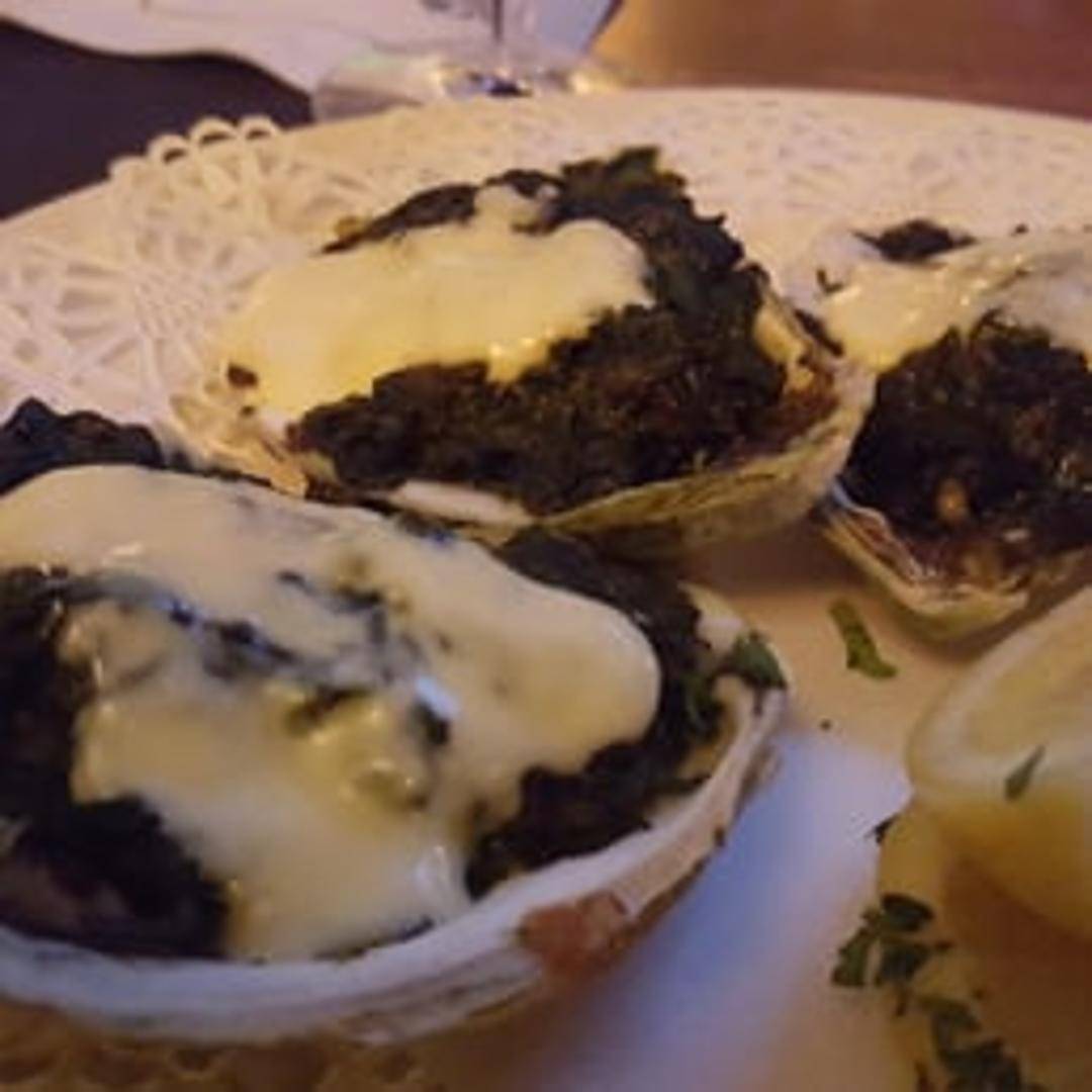 Oysters baked or broiled and topped with a rich sauce of green herbs, butter, bread crumbs, and other seasonings.