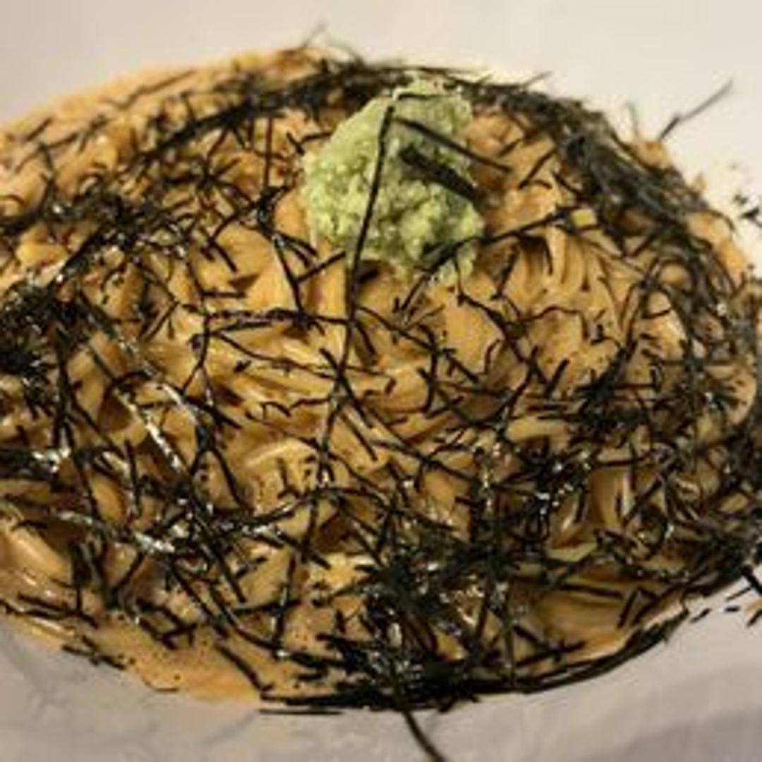 Pasta (type may vary) coated in a luxurious sauce featuring fresh sea urchin (uni), blended with cream, butter, and subtle seasonings. Often garnished with seaweed and a squeeze of citrus.