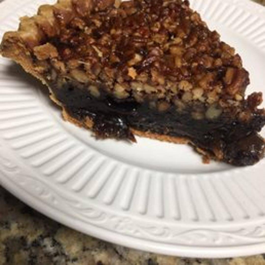 Indulge in a decadent slice of our homemade Chocolate Pecan Pie, featuring a rich, gooey filling generously packed with toasted pecans and premium chocolate chips, all nestled within a buttery, flaky crust. A perfect blend of sweet, nutty, and chocolatey goodness, embodying the cherished tradition of Southern desserts.