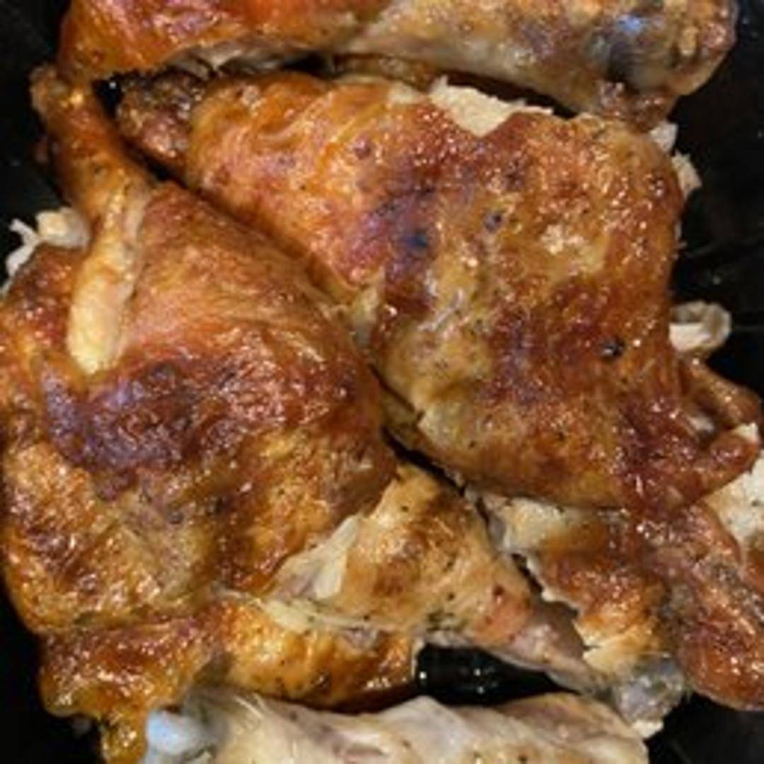 A generous portion of flavorful, roasted dark meat chicken. Served with your choice of two sides and a warm roll.