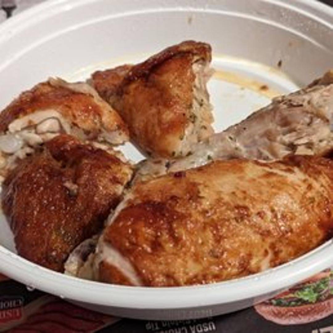 A juicy and tender half chicken, roasted to perfection with a savory blend of seasonings. Served hot and ready to eat.