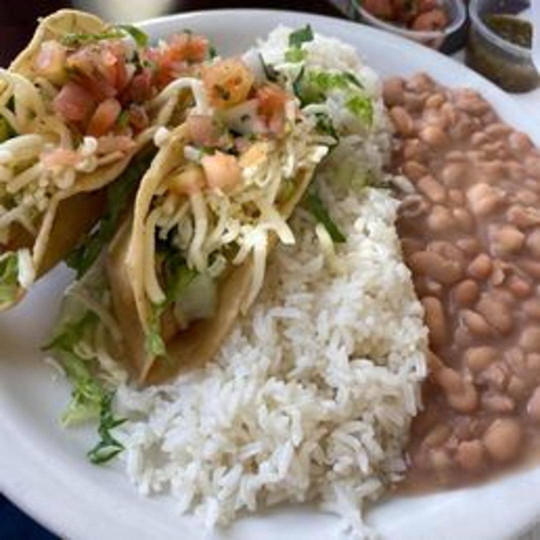 Rice, beans, shredded chicken, lettuce, pico de gallo, sour cream, guacamole, and cheese served in a bowl.