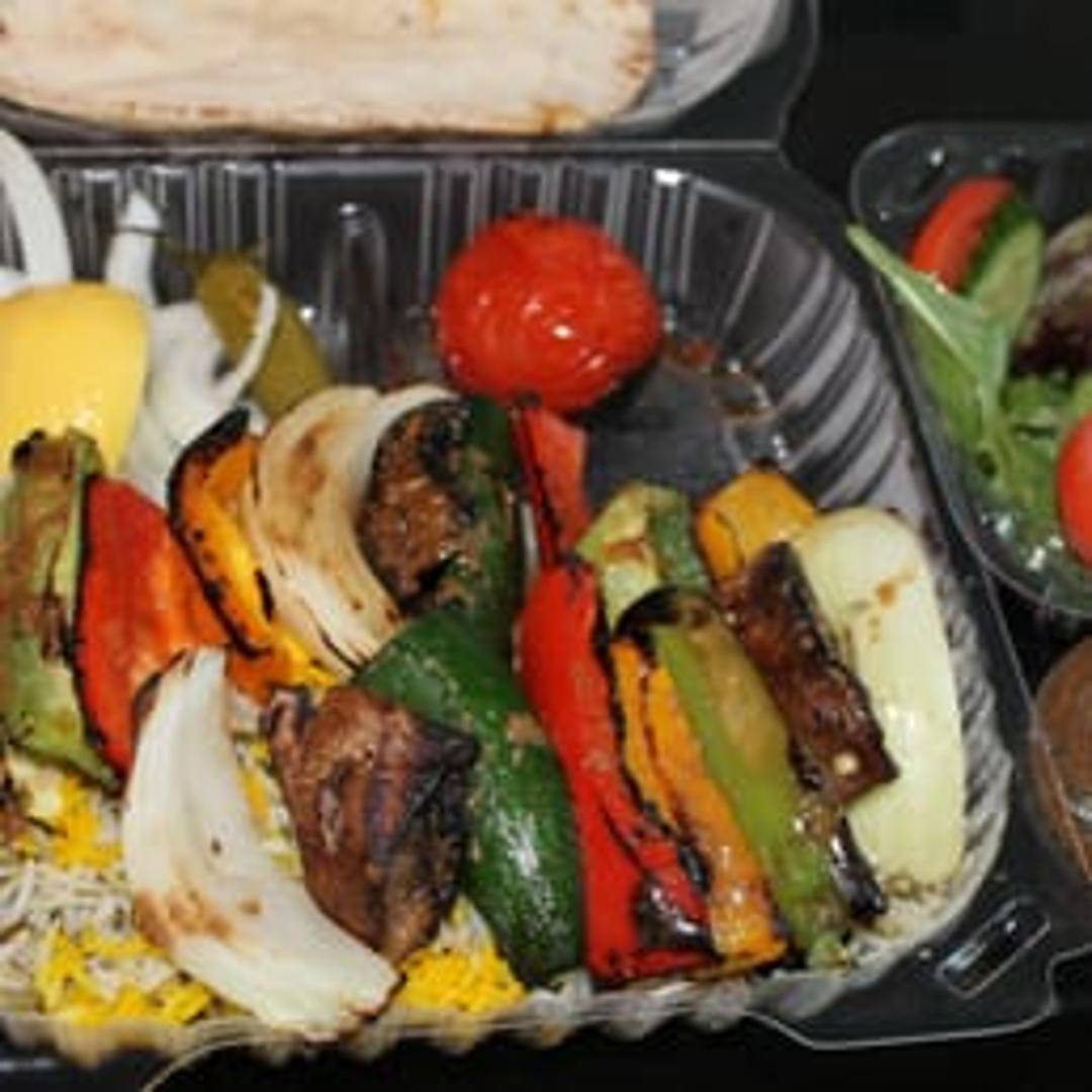 Grilled skewers featuring a medley of fresh vegetables, marinated in signature CKK seasoning. Includes bell peppers, onions, zucchini, and other seasonal vegetables. Served with choice of side.