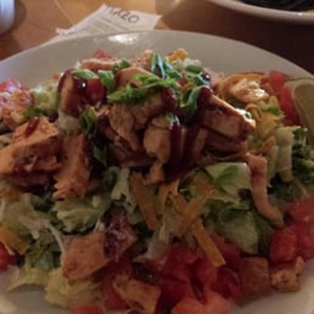 Black beans, sweet corn, jicama, fresh cilantro & basil, crispy corn tortilla strips, Monterey Jack & BBQ ranch dressing. Topped with BBQ chicken, tomatoes & scallions.