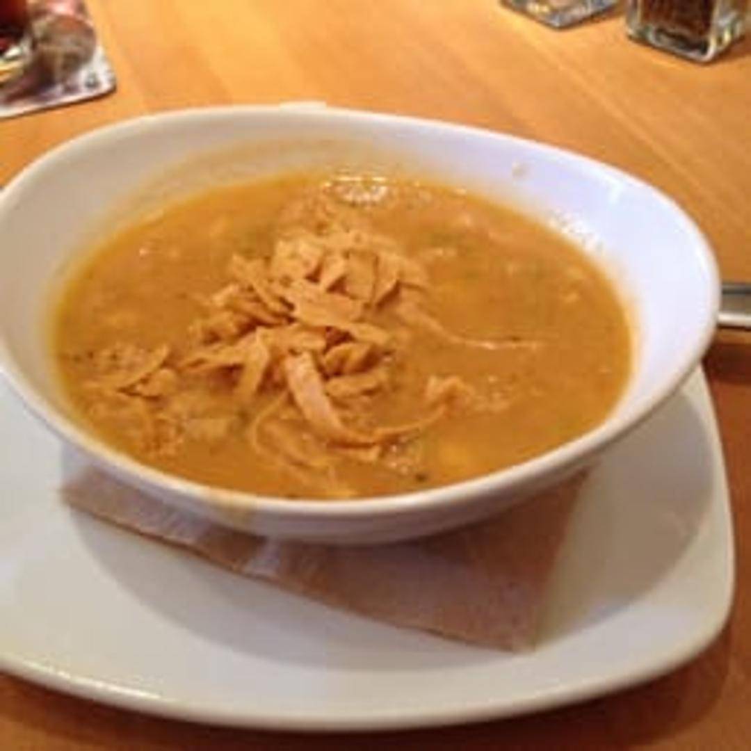 A hearty and flavorful soup featuring a blend of Southwestern spices, tender chicken, and vegetables, topped with crispy tortilla strips, avocado, and a dollop of sour cream. May contain onions, garlic, tomatoes, corn, and mild chili peppers.