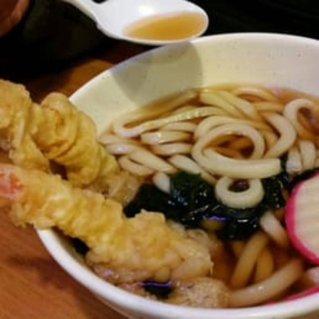 Thick, chewy wheat flour noodles served in a flavorful broth. Often includes toppings such as green onions, fish cake, and seaweed. Can be served hot or cold.