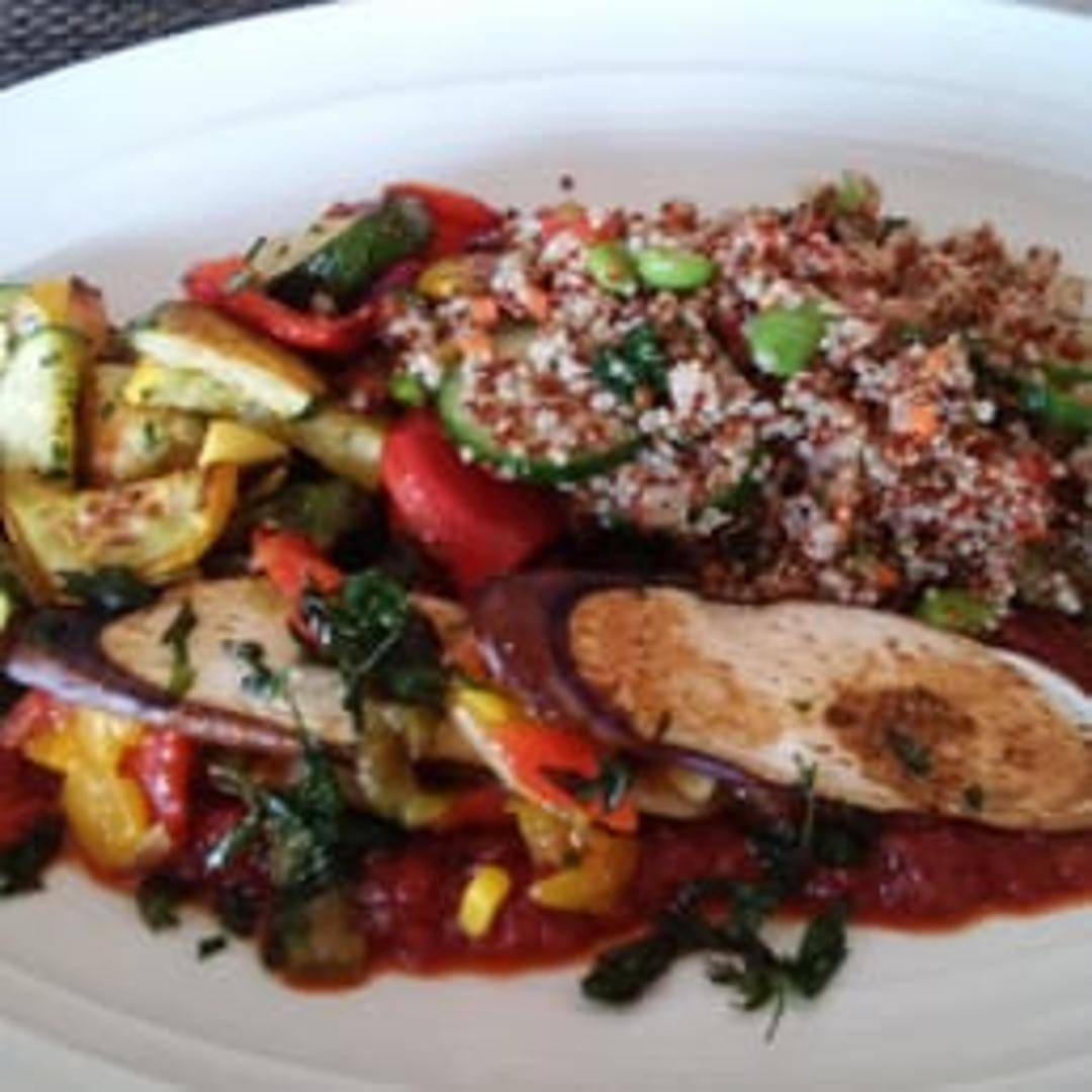 A vibrant assortment of chef-selected seasonal vegetables, expertly prepared to highlight their natural flavors and textures. This wholesome plate features a thoughtful blend of roasted, grilled, and lightly blanched vegetables, perhaps complemented by a delicate herb dressing or a light vinaigrette. A perfect choice for a fresh and satisfying meal.