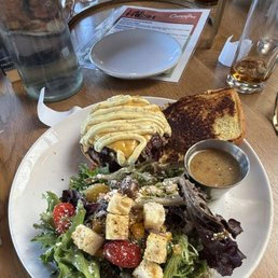 A classic, juicy hamburger. Expect a perfectly cooked beef patty, nestled in a soft bun, topped with your choice of fresh, crisp toppings and flavorful condiments.