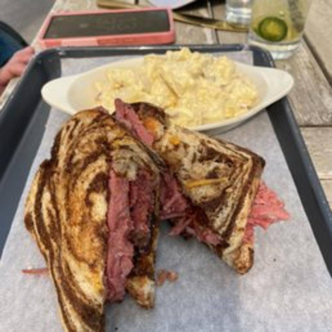 A premium pastrami sandwich featuring tender, flavorful Wagyu beef. Thinly sliced and piled high on rye bread with mustard and your choice of toppings.