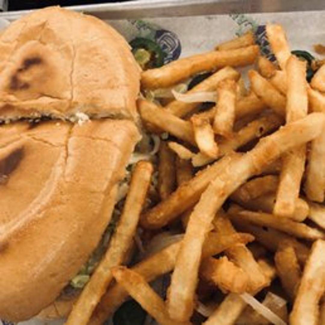 A toasted Mexican sandwich filled with your choice of grilled steak, carnitas, or chicken, topped with refried beans, lettuce, tomato, onions, avocado, and jalapeños. Served with fries.