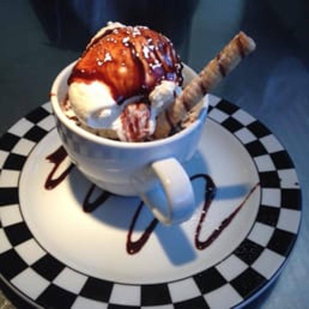 An generously sized serving of rich and creamy hot chocolate, perfect for warming up or indulging a sweet craving. Made with high-quality chocolate, it offers a deeply satisfying and comforting beverage experience.