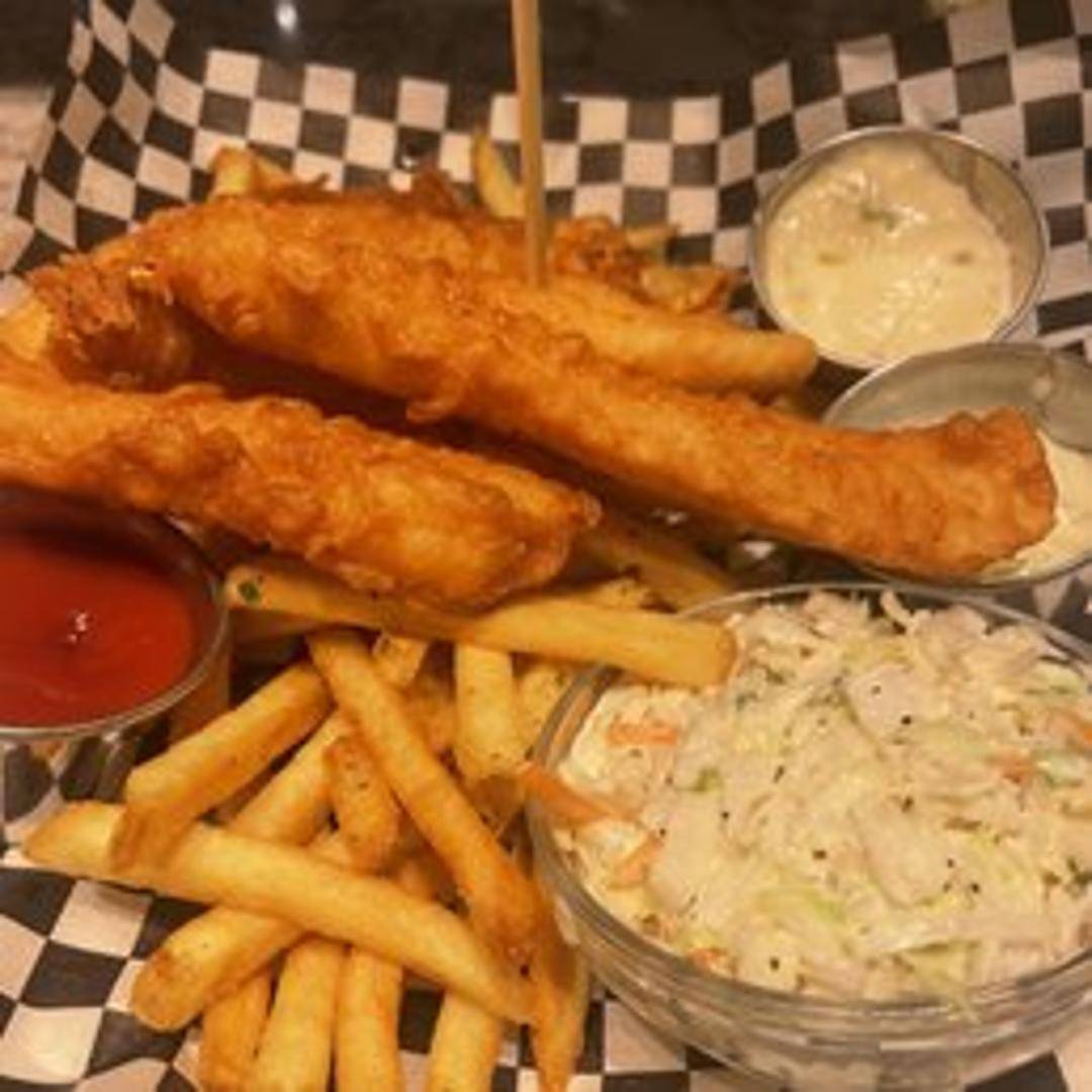 Enjoy a timeless classic with our Fish and Chips, featuring flaky, tender white fish (typically cod or haddock) dipped in a light, crispy batter and golden-fried to perfection. Served alongside a generous portion of seasoned, hand-cut fries, this beloved dish is accompanied by classic tartar sauce and a lemon wedge for an authentic diner experience.