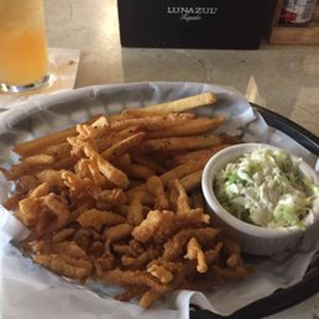 Crispy, golden-fried clam strips served with tartar sauce and your choice of side.