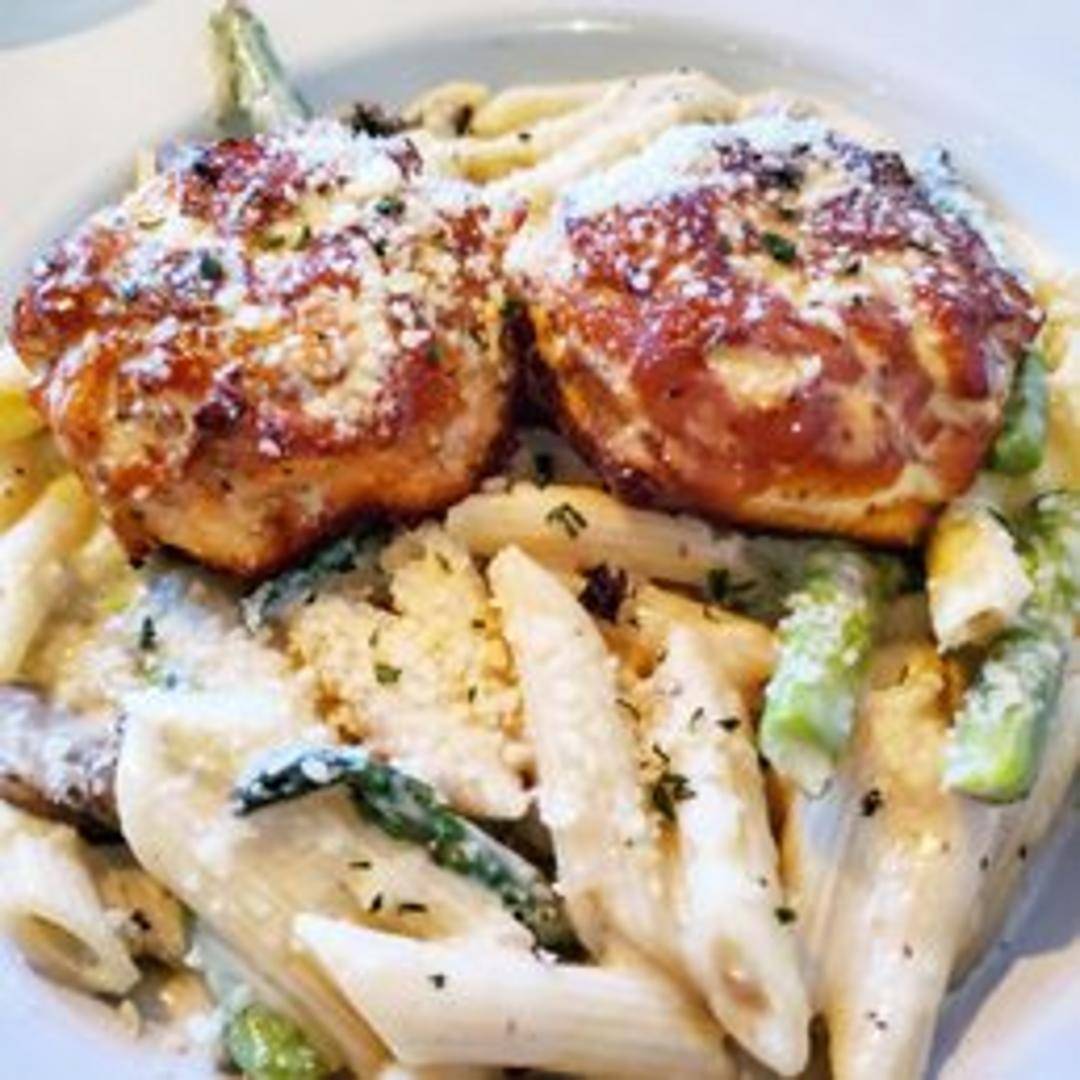 Fettuccine pasta tossed in a creamy Alfredo sauce with flakes of tender smoked salmon.