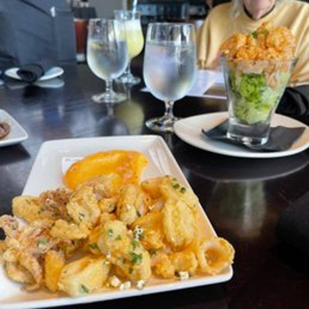 Lightly battered and fried calamari, served with a side of marinara sauce and aioli.