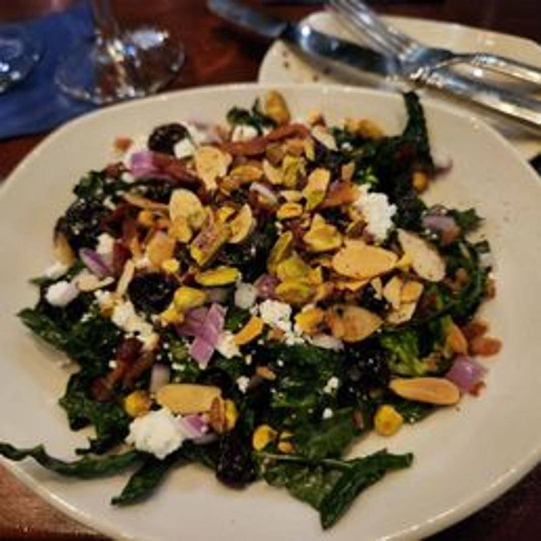 Fresh kale salad, likely featuring locally sourced Michigan ingredients such as seasonal fruits, vegetables, and a flavorful dressing.