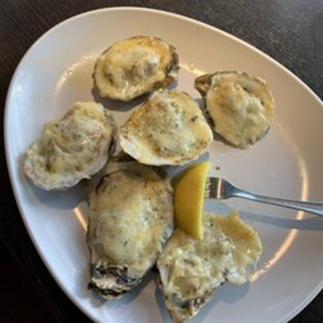 Freshly shucked oysters baked with a savory garlic butter sauce, herbs, and a touch of Parmesan cheese. Served hot and bubbly.