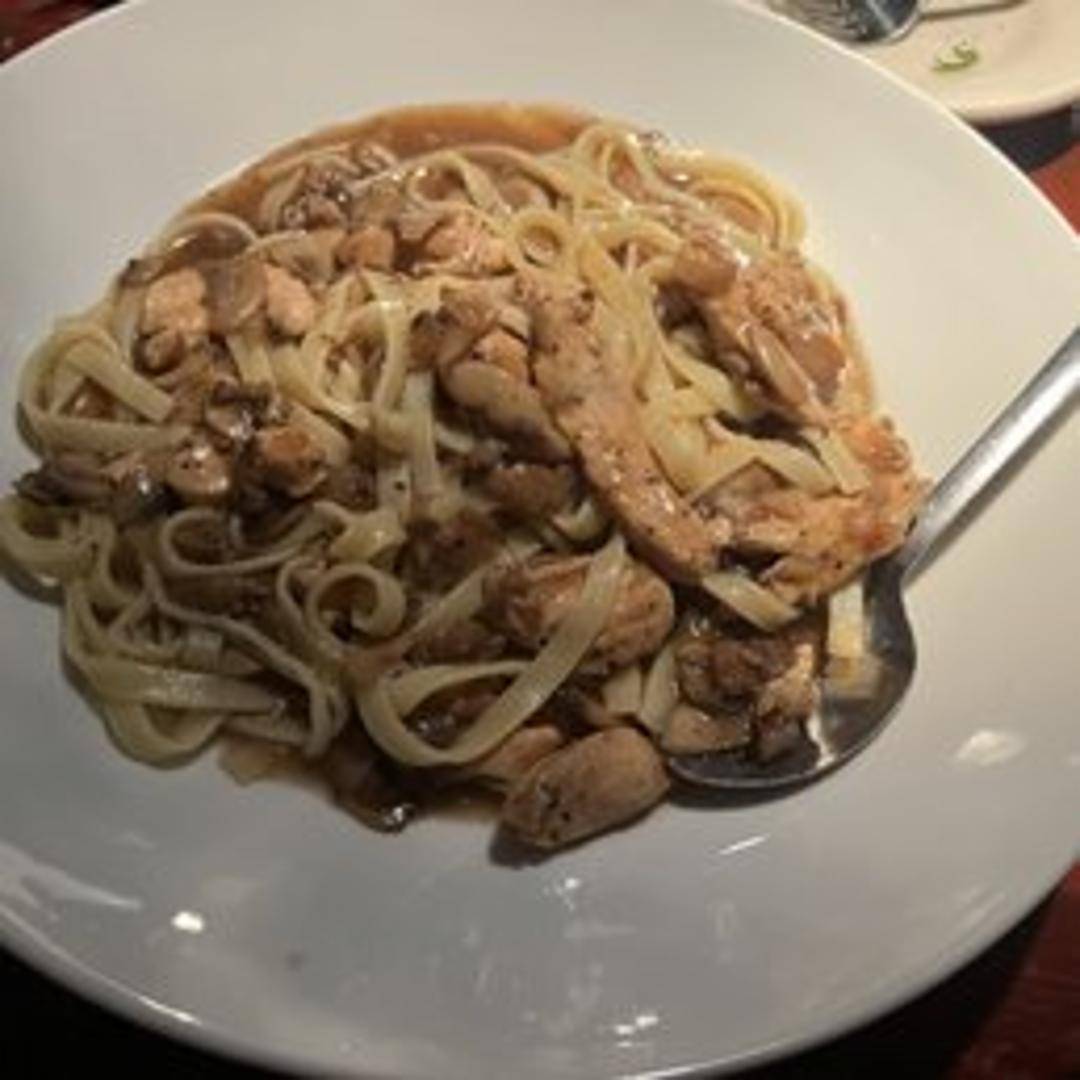 Sautéed chicken breast in a rich Marsala wine sauce with mushrooms. Served with a side of pasta.