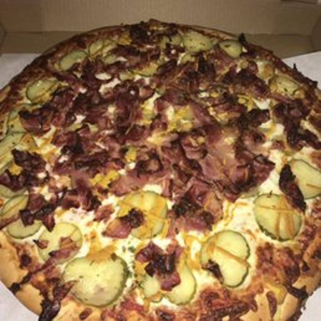 A unique twist on a classic! Thinly sliced pastrami, tangy mustard, and dill pickles combine with our signature pizza sauce and mozzarella cheese for a savory and unforgettable pizza experience.