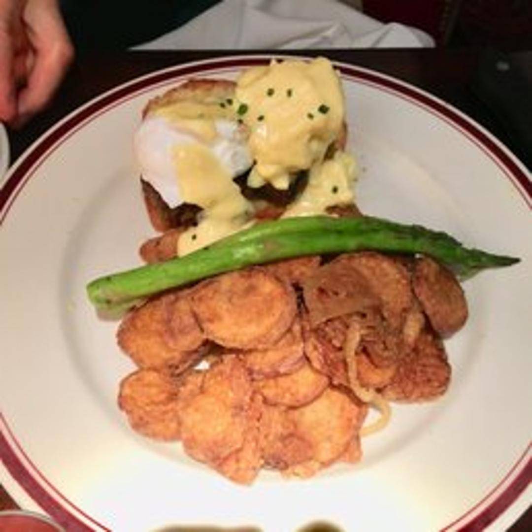 Experience our elevated Steak and Eggs Benedict, featuring tender, perfectly grilled sliced sirloin steak layered atop a toasted English muffin. Crowned with two exquisitely poached eggs and generously drizzled with our velvety, house-made hollandaise sauce, this hearty dish is a sophisticated blend of savory flavors, ideal for a memorable brunch.