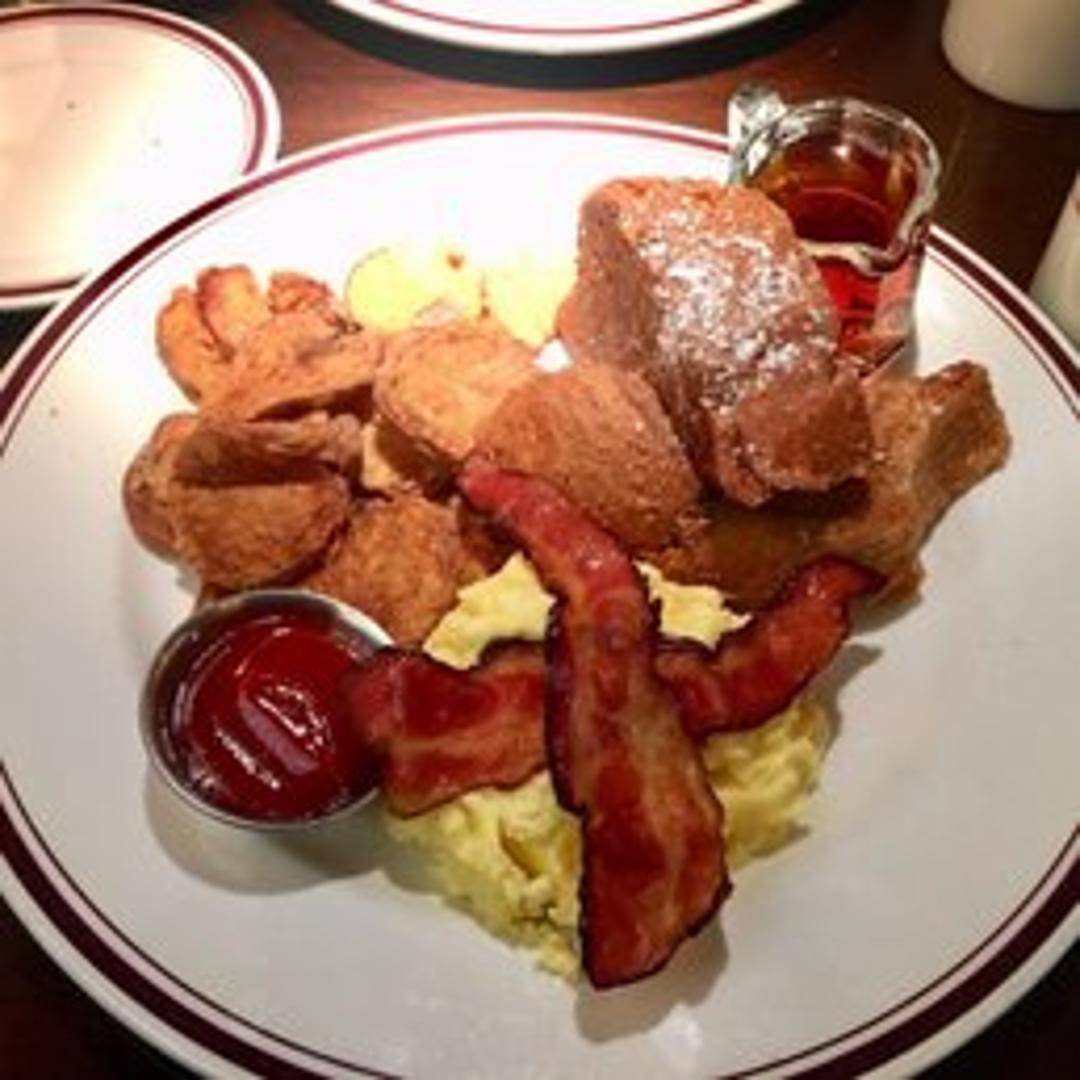 Indulge in our classic French Toast, crafted from thick-cut challah bread, delicately dipped in a rich, spiced egg batter and griddled to golden perfection. Each slice is light and fluffy on the inside with a beautifully caramelized exterior, served with a dusting of powdered sugar and a side of pure maple syrup. A comforting and satisfying start to your day or a delightful brunch treat.