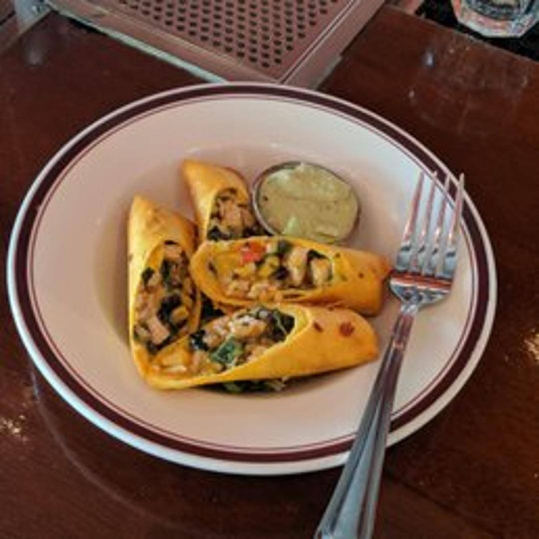 Crispy fried egg rolls generously filled with a vibrant blend of seasoned chicken, black beans, corn, peppers, and melted cheese, served with a zesty dipping sauce for a delightful Tex-Mex kick and irresistible crunch.