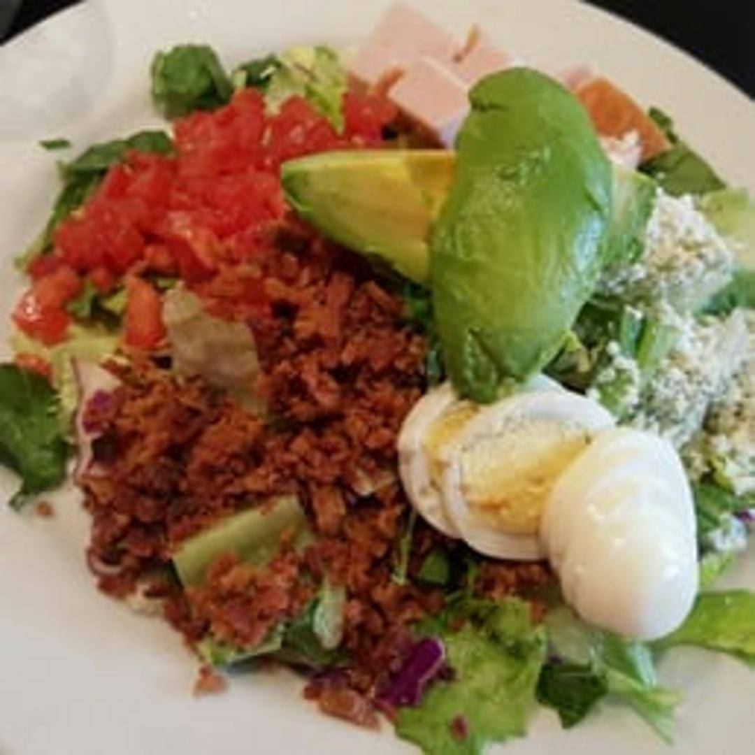 Grilled chicken, bacon, avocado, hard-boiled egg, tomatoes, and bleu cheese crumbles atop mixed greens with your choice of dressing.