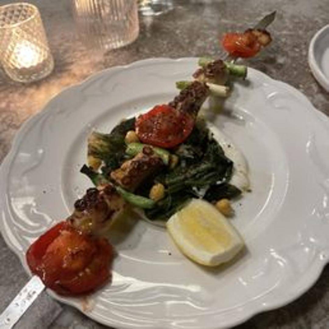 Tender grilled octopus, expertly charred to perfection. Served with a light and flavorful marinade, herbs, and a touch of citrus. A delicate balance of smoky and savory.
