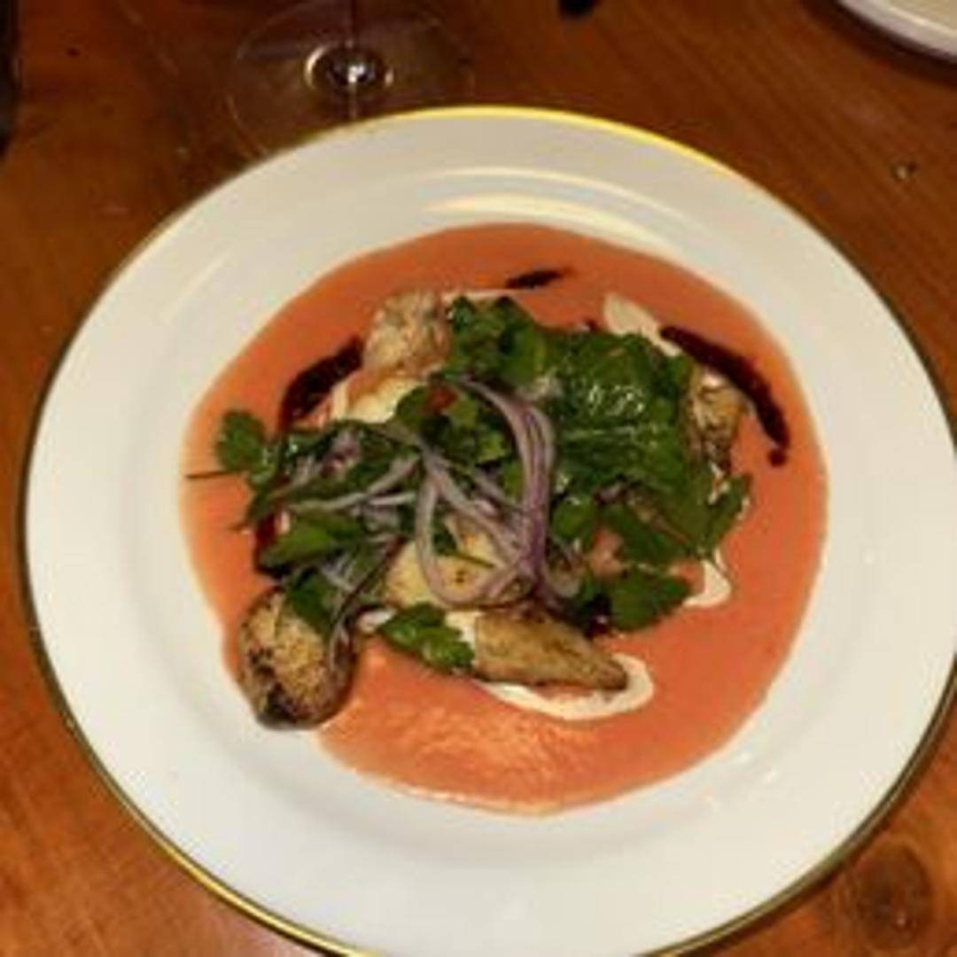 Thinly sliced, spice-rubbed grouper, cooked shawarma-style and served in a warm pita with pickled vegetables, tahini, and amba sauce.