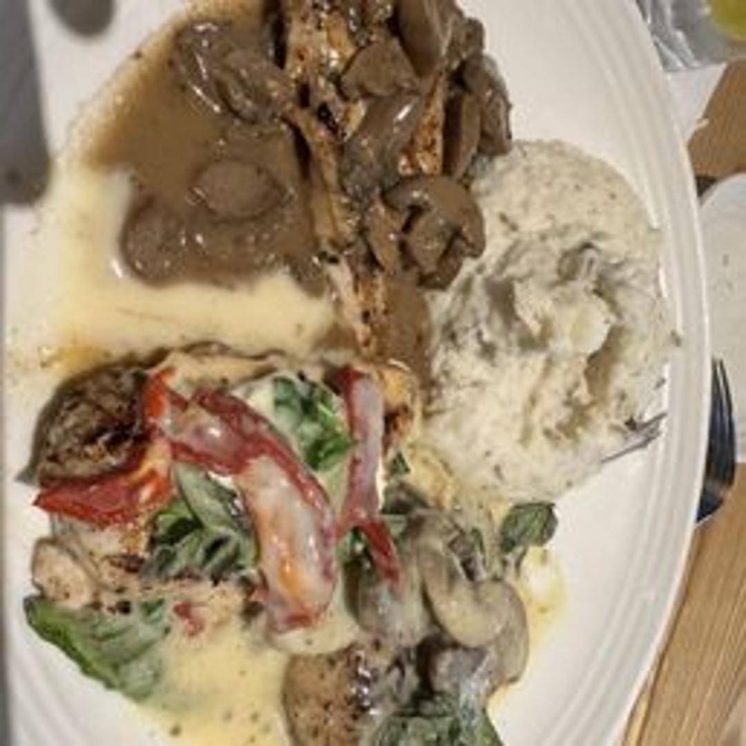 Three mini chicken breasts each topped with a different flavor: Bryan, Marsala, and Rosa Maria.