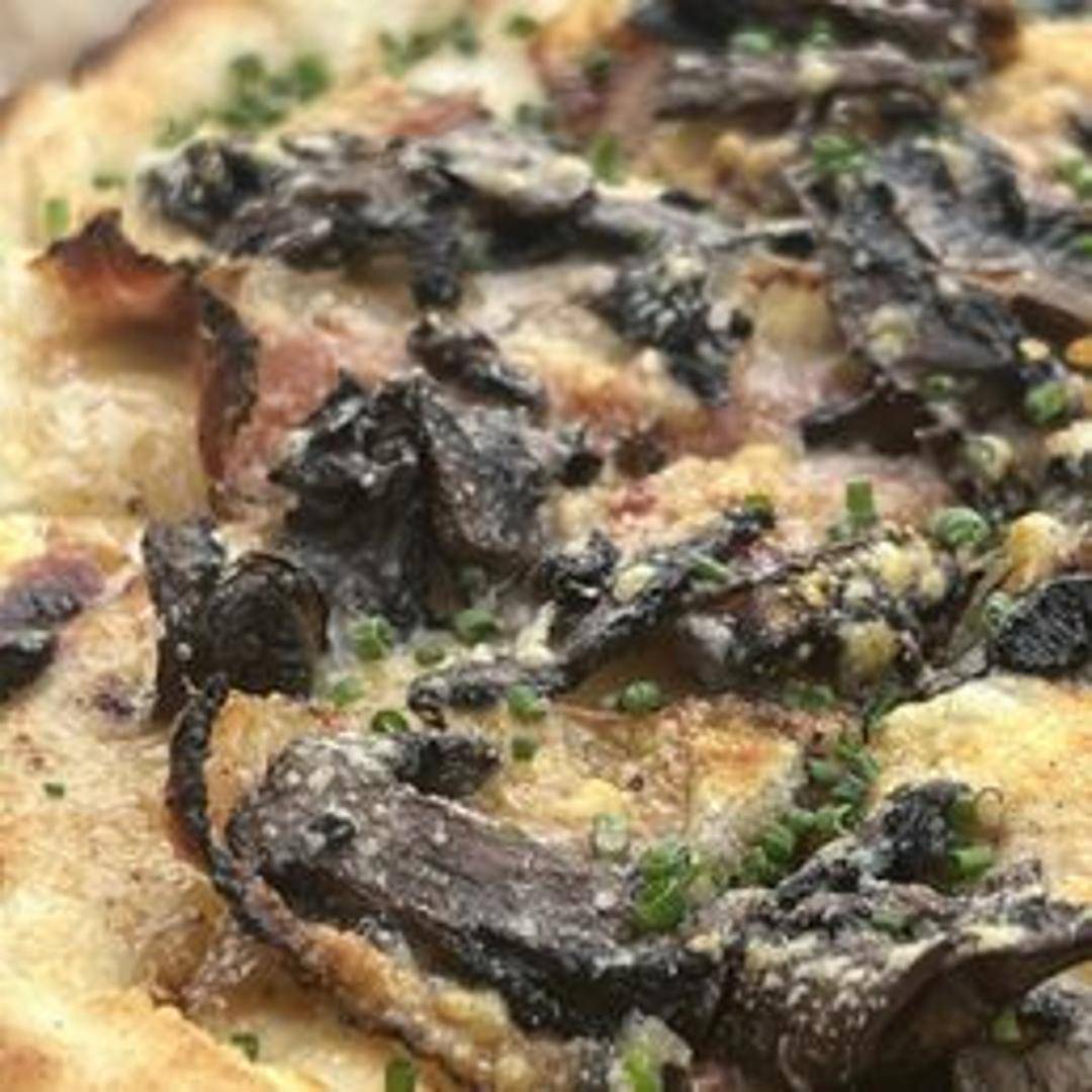 Pizza topped with a variety of mushrooms, often including options such as cremini, shiitake, or oyster mushrooms. May also include complementary ingredients like garlic, herbs, and cheeses.
