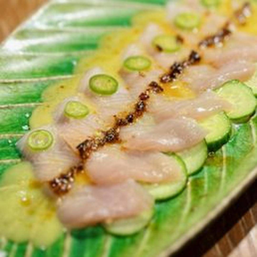 Thinly sliced yellowtail (Hamachi) served with thinly sliced serrano peppers. Accented with a citrus-soy ponzu sauce and micro cilantro.