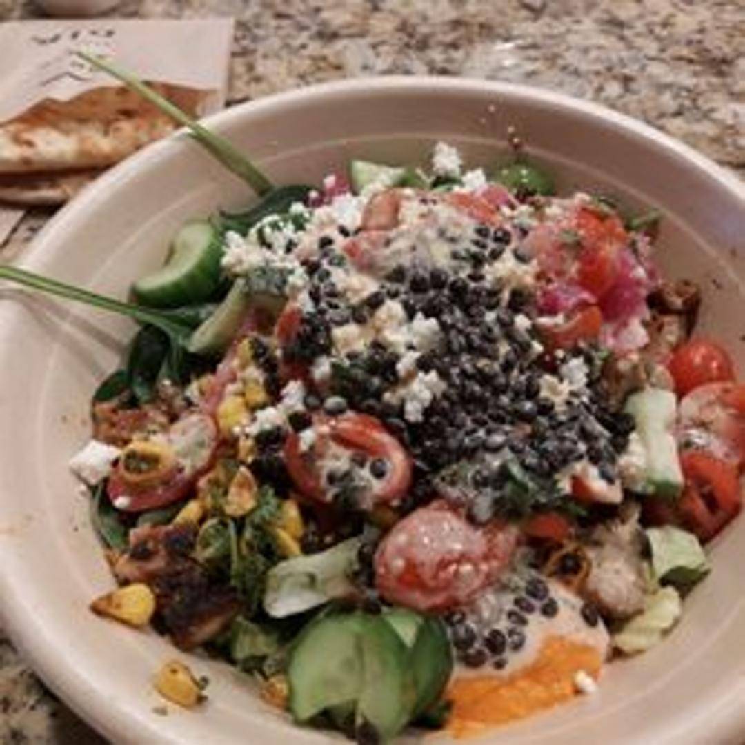 Crisp romaine lettuce tossed in a creamy tahini caesar dressing. Add your choice of protein, dips, toppings, and grains to build your perfect bowl or pita.