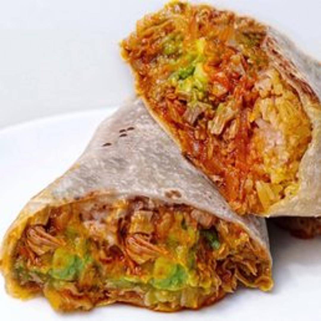 A massive burrito filled with your choice of Cena Vegan's signature marinated and seasoned plant-based meats, rice, beans, pico de gallo, guacamole, shredded lettuce, and creamy vegan sauce. Available with various meat options like carne asada, al pastor, or pollo asado (availability may vary). A truly satisfying and filling vegan feast.