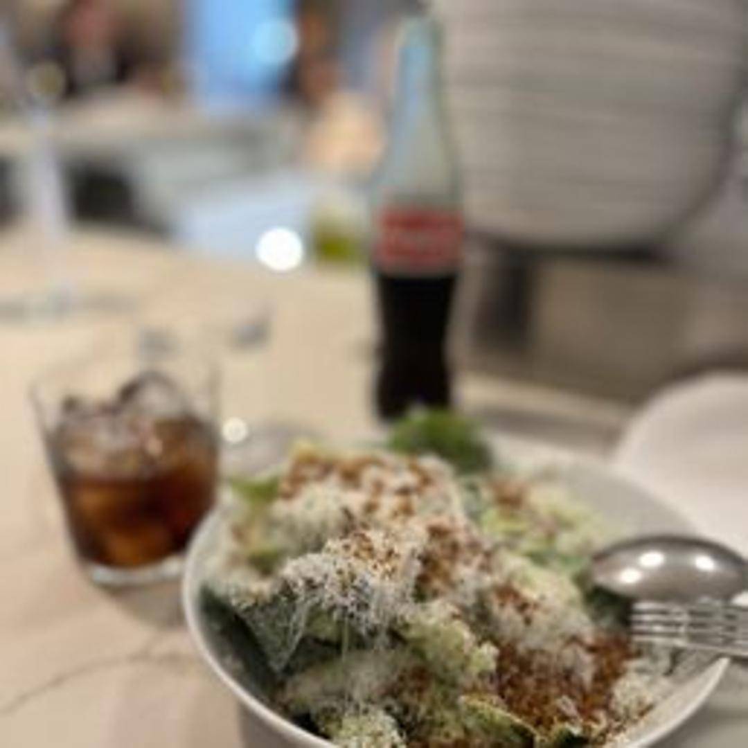 Crisp Little Gem lettuce tossed in a classic Caesar dressing, topped with parmesan cheese and croutons.