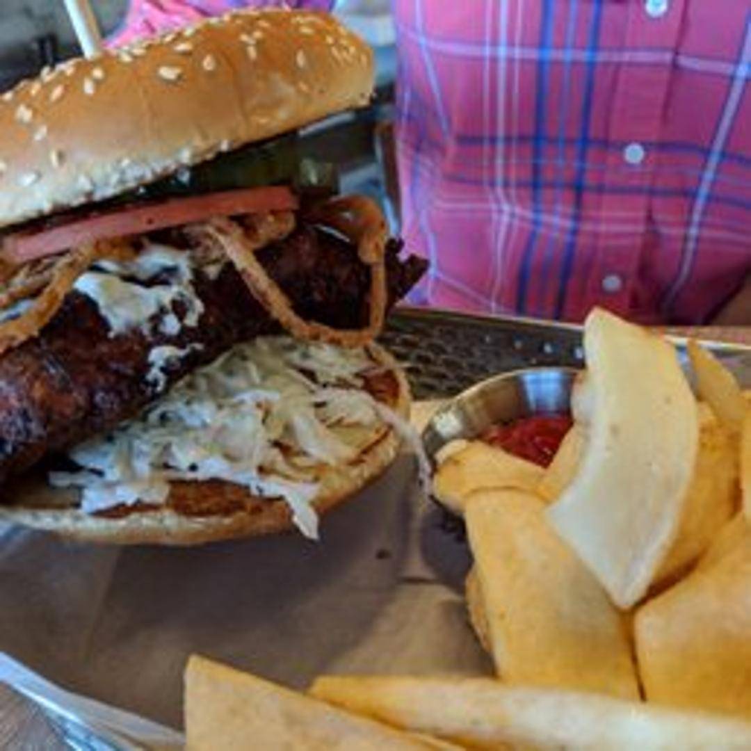 A juicy, crispy fried chicken breast served on a toasted brioche bun with crisp lettuce, ripe tomato, your choice of cheese, and our signature sauce.