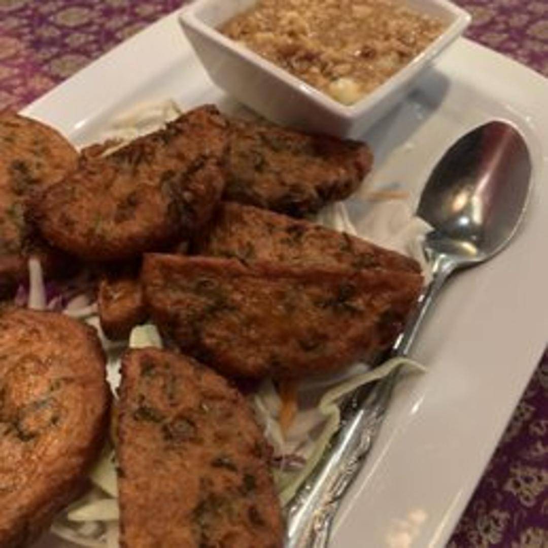Deep-fried fish cakes seasoned with red curry paste, kaffir lime leaves, and served with a sweet chili dipping sauce.