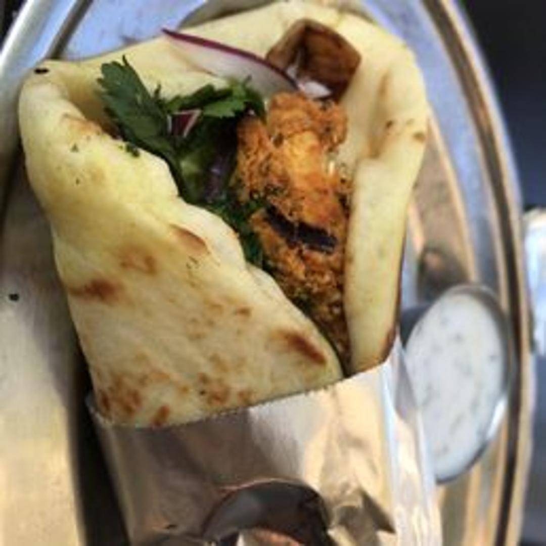 Grilled, marinated chicken tikka wrapped in paratha bread with fresh herbs, pickled onions, and a flavorful chutney.