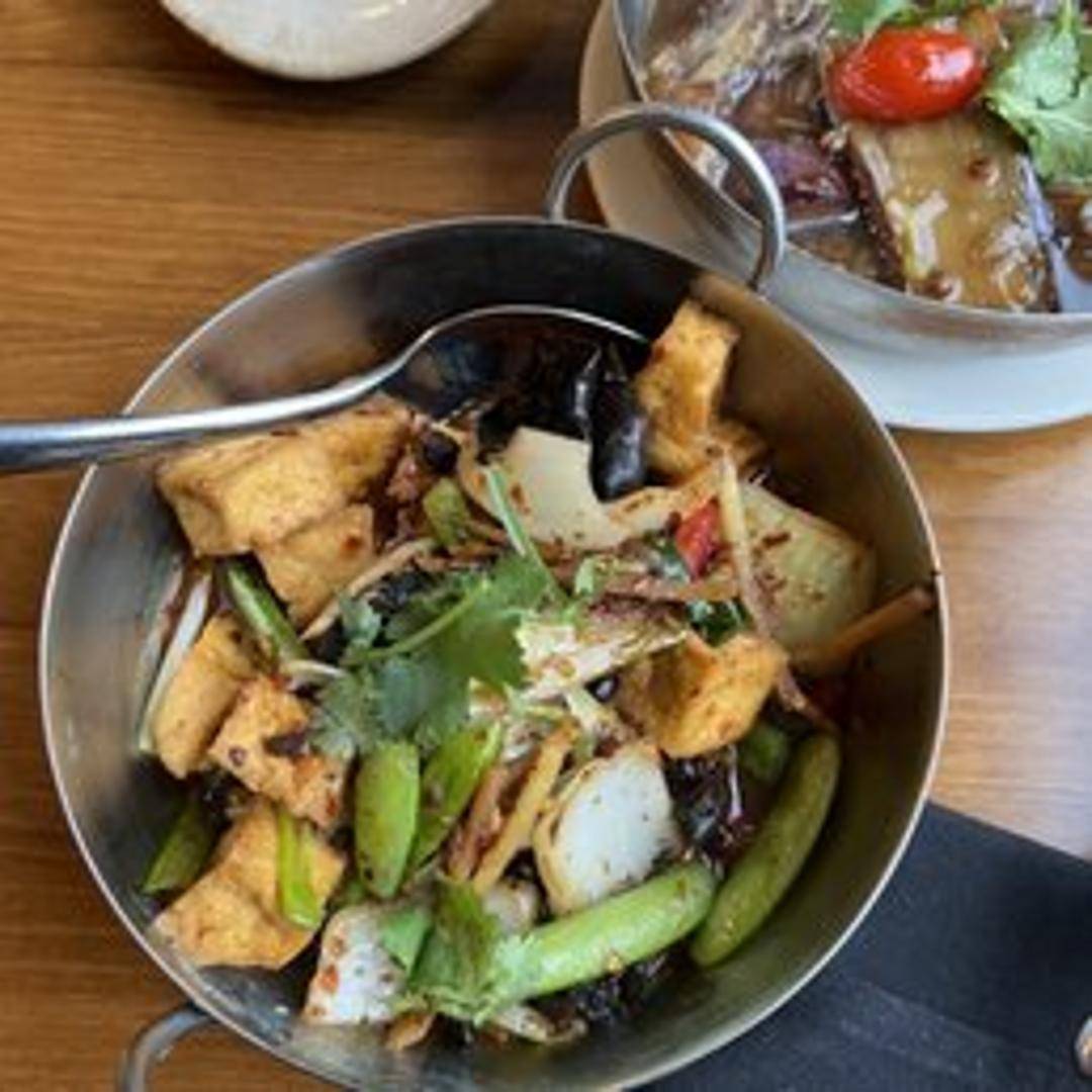 Crispy tofu cubes stir-fried in a sweet, savory, and moderately spicy chili sauce. A vegetarian delight with a perfect balance of textures and flavors, offering a taste of Singaporean street food.