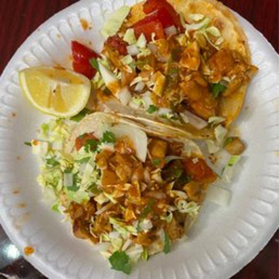 Shredded chicken, onions, and cilantro served on a warm corn tortilla with your choice of salsa.