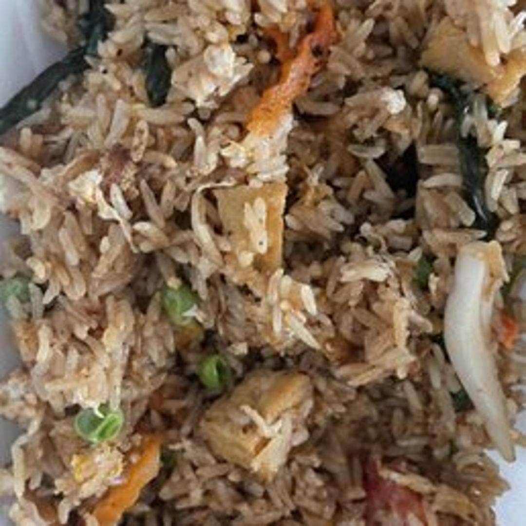 Savory fried rice stir-fried with fresh basil leaves, onions, bell peppers, and your choice of protein (tofu, chicken, pork, beef, shrimp, or vegetables). Seasoned with a flavorful blend of Thai spices and soy sauce.