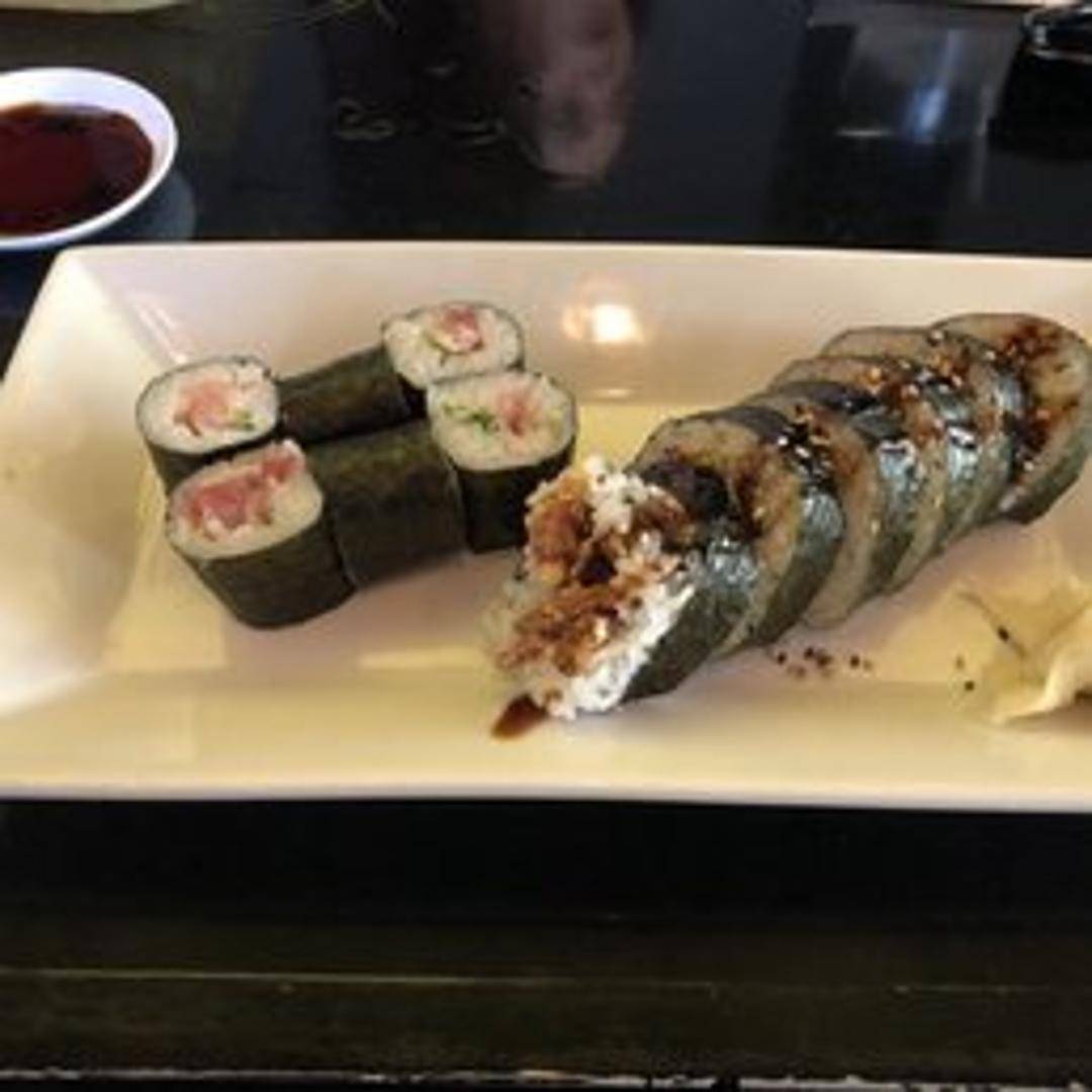 Tempura soft shell crab, avocado, cucumber, lettuce, masago, and eel sauce.