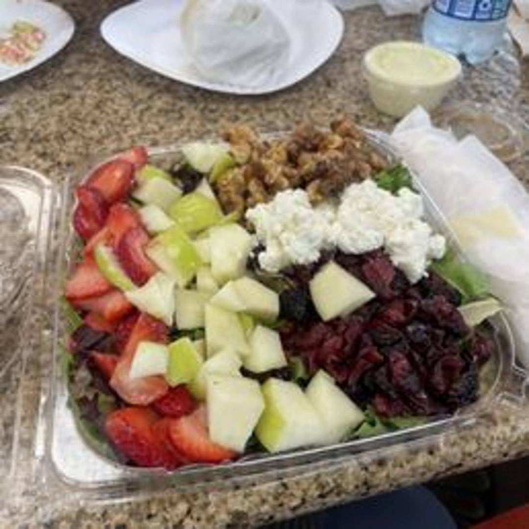 A refreshing and flavorful salad featuring fresh strawberries, crunchy walnuts, and crisp greens. Often includes a light vinaigrette dressing to complement the sweet and nutty flavors.