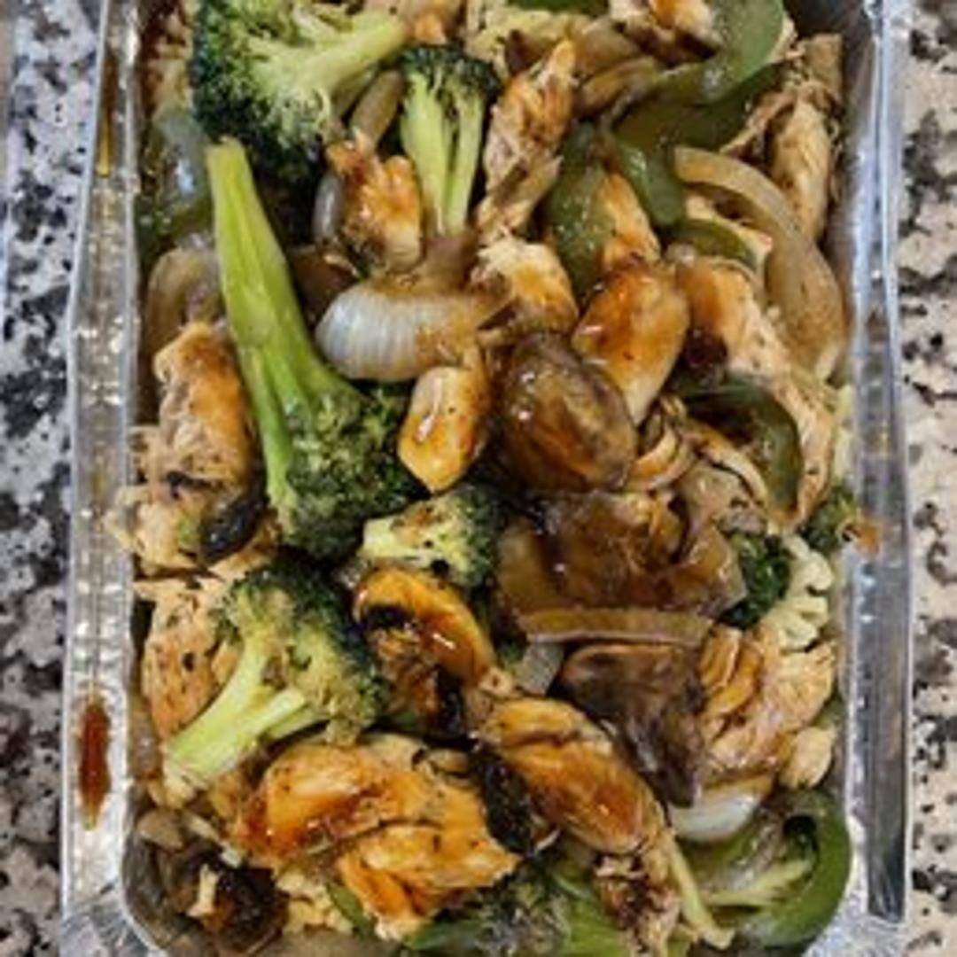 A hearty and flavorful bowl featuring tender slices of steak, served over a bed of fluffy rice. Typically includes a savory sauce, and possibly vegetables or other toppings for a complete and satisfying meal.