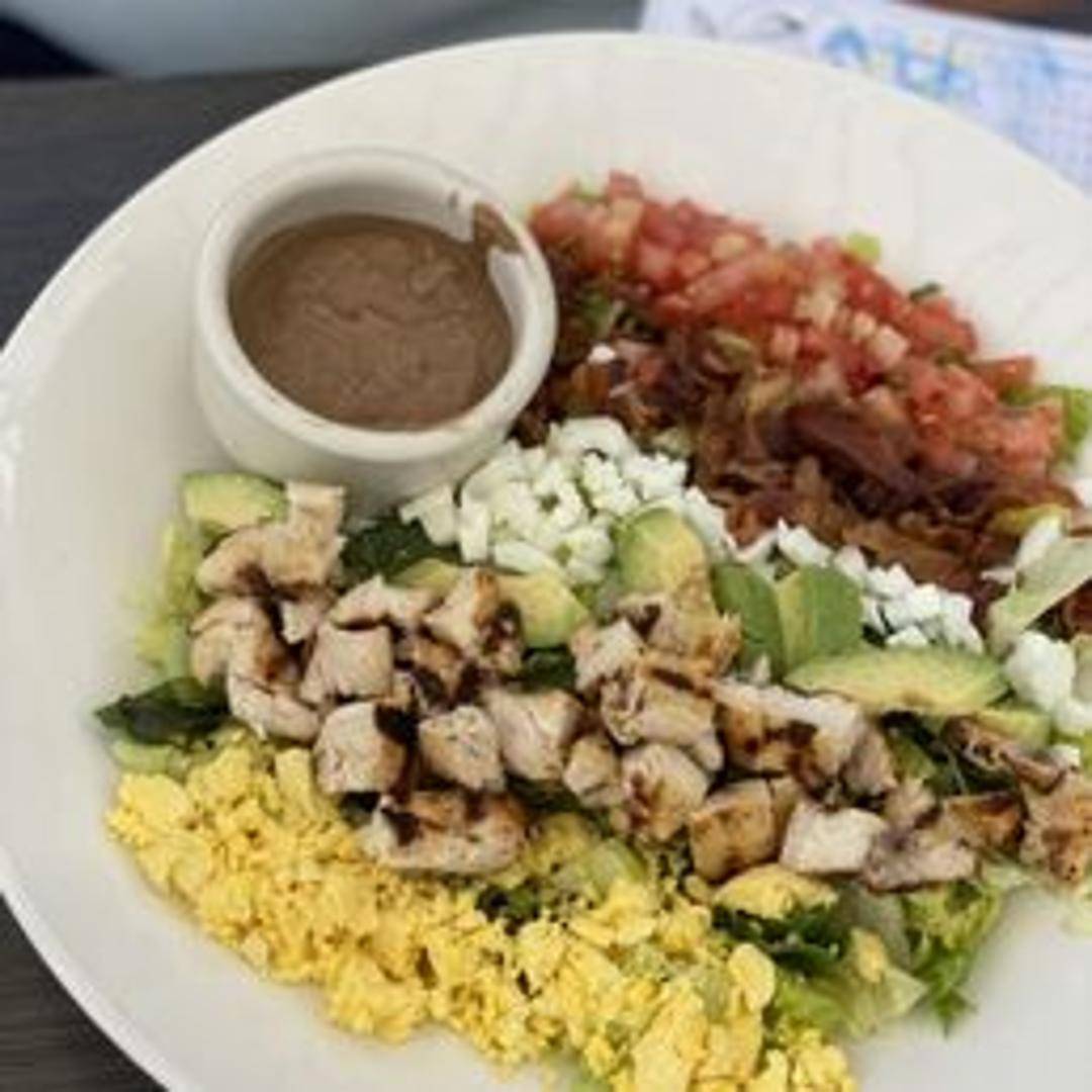 A refreshing and vibrant salad featuring a medley of fresh, finely chopped greens and vegetables, tossed with a flavorful dressing for a crisp and satisfying side or light meal.