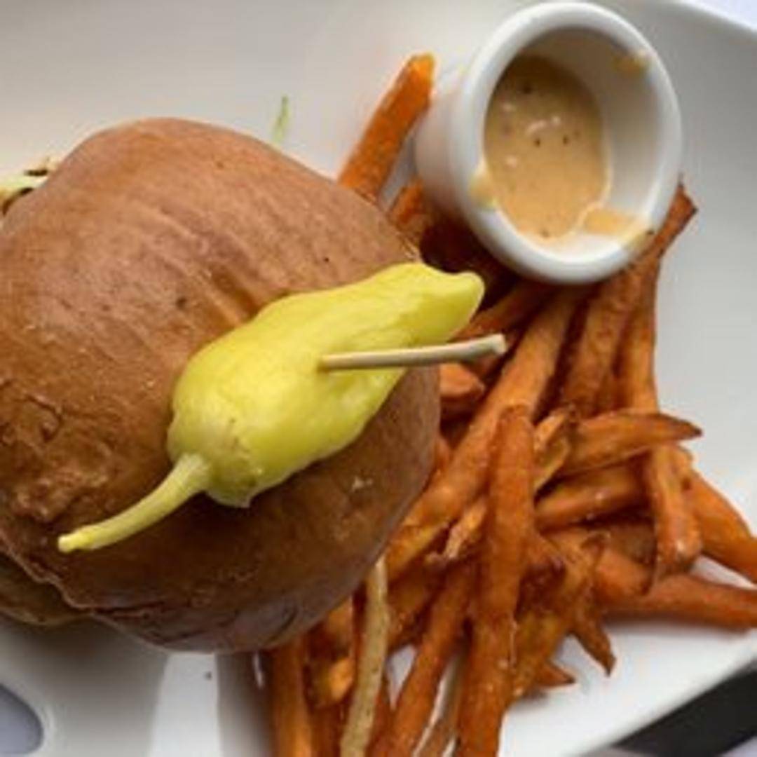 Indulge in our exquisite Crab Cake, crafted with a generous portion of sweet, lump crab meat, delicately seasoned with a blend of coastal spices and pan-seared to a golden perfection. This savory delicacy offers a tender, flaky interior with a delightful crisp exterior, typically served with a zesty remoulade or fresh lemon wedge to enhance its natural flavors.
